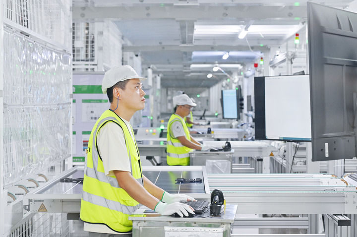 工人在位于浙江省樂清市的正泰集團8GW高效光伏組件生產基地工作(資料照片)。新華社發(fā)