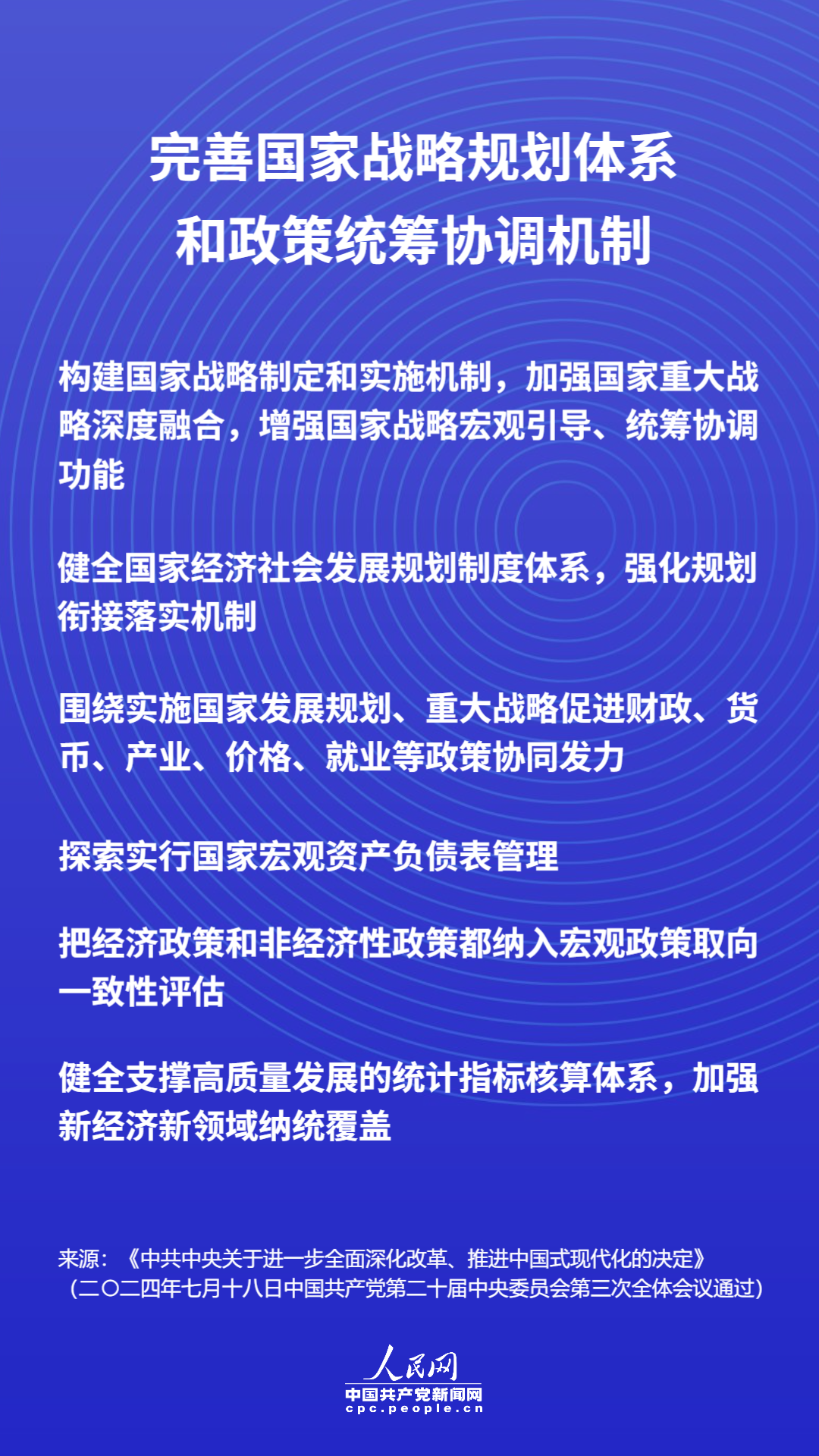 本期主題:黨的二十屆三中全會審議通過的《中共中央關(guān)于進一步全面深化改革、推進中國式現(xiàn)代化的決定》(以下簡稱《決定》)提出“完善國家戰(zhàn)略規(guī)劃體系和政策統(tǒng)籌協(xié)調(diào)機制!边@是發(fā)揮中國特色社會主義制度的獨特優(yōu)勢、推進國家治理體系和治理能力現(xiàn)代化的重要舉措。