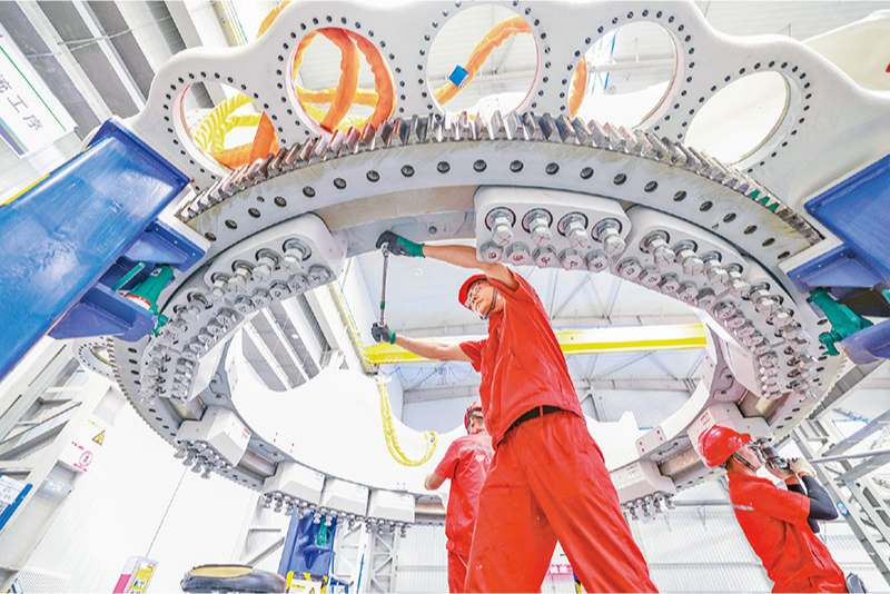 黨的二十屆三中全會(huì)強(qiáng)調(diào)要建設(shè)一流產(chǎn)業(yè)技術(shù)工人隊(duì)伍。產(chǎn)業(yè)工人是工人階級(jí)的主體力量,各級(jí)工會(huì)要更好團(tuán)結(jié)動(dòng)員廣大職工為進(jìn)一步全面深化改革、推進(jìn)中國(guó)式現(xiàn)代化作貢獻(xiàn)。圖為2024年7月23日,河北省隆化縣一家風(fēng)電設(shè)備企業(yè)的工人在車(chē)間工作。 新華社發(fā) 李秀清/攝